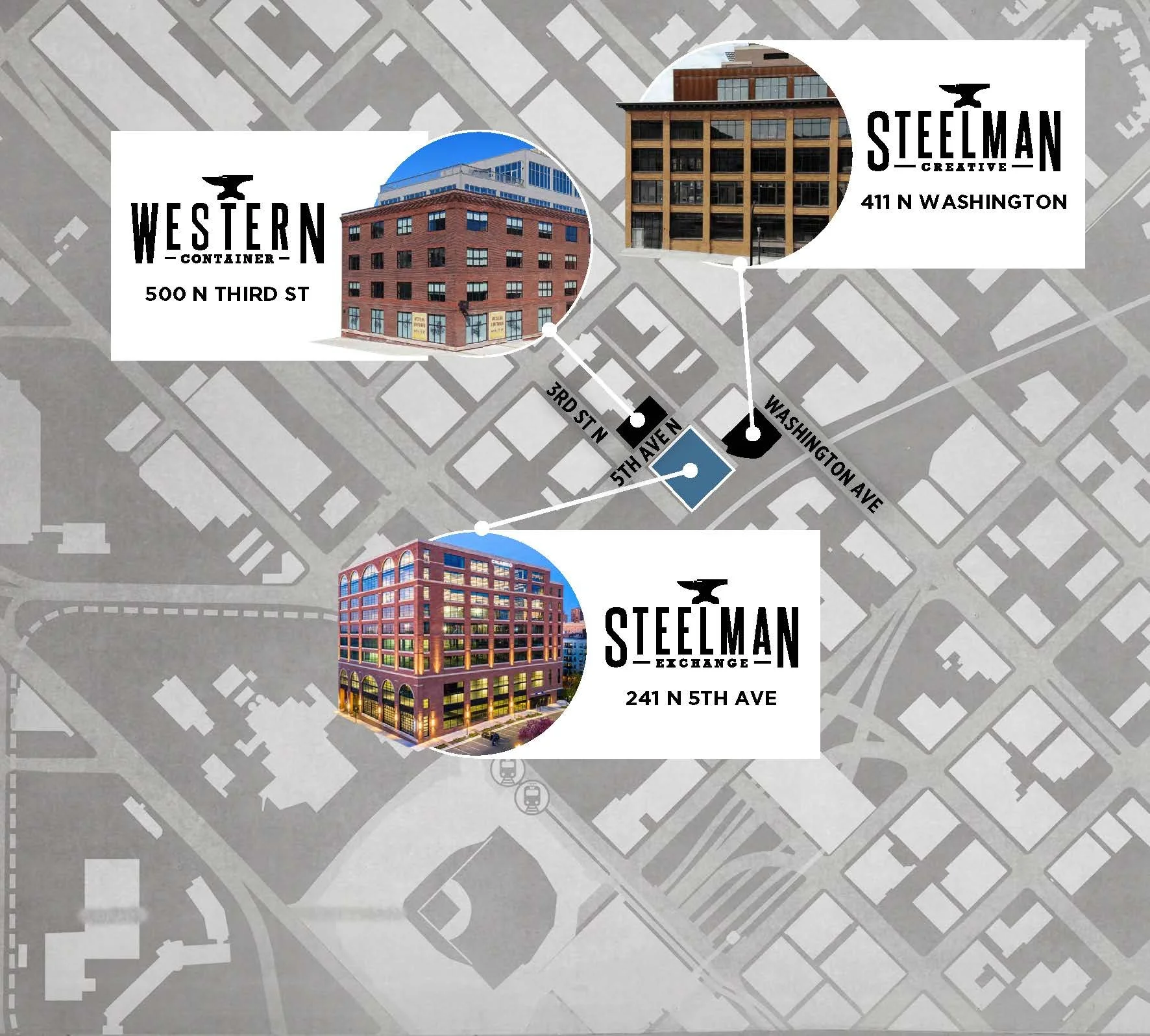 The Steelman brand is built upon the strength of Minneapolis’ deep industrial roots, the vibrancy of today’s North Loop neighborhood culture, and the creativity of tomorrow’s innovators.